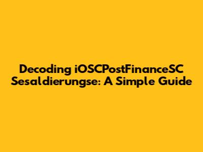 Alright, guys, let's dive into the somewhat cryptic world of iOSCPostFinanceSC Sesaldierungse. Sounds like something out of a techy spy movie, right? Well, in reality, it's a term you might stumble upon while dealing with financial transactions, specifically those involving iOS devices (like your iPhone or iPad), PostFinance (a Swiss financial institution), and certain security or settlement processes. Now, I know what you're thinking: "What does all that even mean?" Don't worry, we're going to break it down piece by piece so it's as clear as a mountain spring. Think of this article as your friendly neighborhood guide to understanding this specific financial jargon. We'll explore what each component likely signifies, how they might interact, and why it's essential to understand this if you're dealing with related financial activities. By the end of this, you'll be able to confidently nod along (or at least Google with more precision!) if you ever encounter "iOSCPostFinanceSC Sesaldierungse" again.