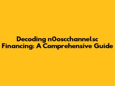 Understanding the Basics of n0oscchannelsc Financing