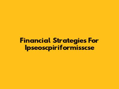 Financial Strategies For Ipseoscpiriformisscse
