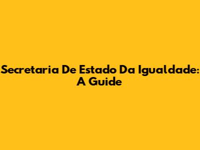 Secretaria De Estado Da Igualdade: A Guide
