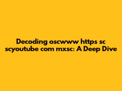 Alright, guys, let's dive headfirst into the mysterious world of "oscwww https sc scyoutube com mxsc." What does it even mean? Why should you care? Well, buckle up because we're about to unravel this cryptic string of characters and explore its possible connections, relevance, and maybe even a bit of internet history. We'll dissect each part, from the "oscwww" to the "https" and even the "scyoutube com mxsc," to give you a comprehensive understanding. Our goal is to make sense of the seemingly nonsensical and provide you with actionable insights or, at the very least, a clearer picture of what you're looking at. So, whether you stumbled upon this term and are scratching your head or you're a seasoned internet sleuth, this deep dive is for you.