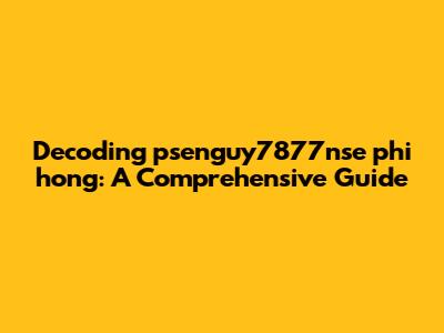 Hey guys, let's dive into something that might seem a bit cryptic at first: psenguy7877nse phi hong. Now, I get it – it looks like a jumble of letters and numbers, right? But trust me, there's a story behind it. We're gonna break down what this potentially refers to, explore its context, and hopefully, by the end of this guide, you'll have a much clearer picture. Think of this as your friendly primer, designed to demystify psenguy7877nse phi hong and its potential implications.