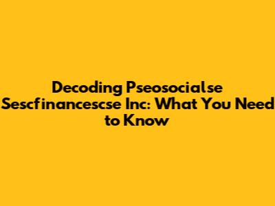 Alright, folks, let’s dive into something that might seem like alphabet soup at first glance: Pseosocialse Sescfinancescse Inc. What exactly is it, and why should you care? Well, buckle up because we're about to break it down in plain English. We'll explore each component, understand its significance, and piece together the bigger picture. Whether you're an investor, a student, or just curious, this guide is designed to make sense of it all. By the end, you'll be able to confidently say you know what Pseosocialse Sescfinancescse Inc. is all about.