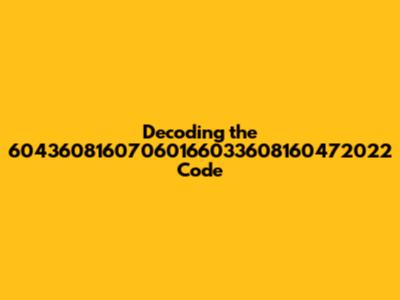 Hey guys, let's dive into the fascinating world of understanding and interpreting seemingly complex codes, specifically the sequence 60436081607060166033608160472022. It might look like a jumble of numbers at first glance, but trust me, there's a story behind every digit. This guide is designed to break down this numerical string and explore potential meanings and applications. Whether you're curious about data encryption, a complex system, or just enjoy a good puzzle, you're in the right place. We'll explore various possibilities for what this code could represent, providing insights into its potential origins and uses. Our journey will involve examining different contexts where such codes might surface and unraveling the potential significance of this specific sequence. So, buckle up, and let's decode the mystery behind 60436081607060166033608160472022!