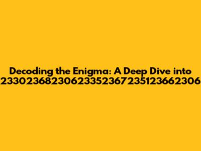 Let’s dig deeper into the potential roles this number sequence could play. The versatility of numbers makes them adaptable to a variety of applications, which means we need to consider different possible functions of 23302368230623352367235123662306.