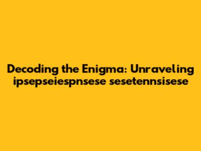 Let's dive into the mysterious world of "ipsepseiespnsese sesetennsisese." I know, it looks like a bunch of letters mashed together, right? But hey, don't let that intimidate you! Sometimes, the most interesting things are hidden behind complex facades. In this article, we're going to try and make sense of this intriguing jumble. Whether it’s a newly coined term, a complex code, or just some random keystrokes, we’ll break it down, explore its potential meanings, and see if we can find any real-world relevance or applications. So, buckle up, grab your detective hats, and let’s get started on this exciting journey of linguistic exploration! We’ll start by examining the structure of the term itself, looking for any recognizable patterns or sub-strings that might give us a clue. Then, we'll consider the context in which it was found or presented. Was it part of a larger document or conversation? Knowing the context can often provide valuable insights into the intended meaning. Next, we’ll delve into potential etymological roots, checking if any of the component parts resemble words or prefixes from known languages. Finally, we'll open it up for interpretation, brainstorming possible meanings and uses, and encouraging you, the reader, to contribute your own ideas and perspectives. Remember, the goal here isn't necessarily to find a definitive answer, but rather to engage in a process of discovery and exploration. So, let your curiosity guide you, and let’s see what we can uncover together!