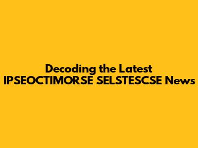 Hey everyone! Let's dive into the exciting world of IPSEOCTIMORSE SELSTESCSE and unpack all the recent news. This is your go-to guide to understanding everything that's been happening, so you're totally in the loop. We'll break down the latest updates, explain what they mean, and why you should care. Ready to get started?