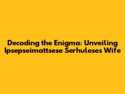 First, let's consider the possibility that it's a fictional character or a reference to a story. "Ipsepseimattsese Serhulese" could be the name of a character in a book, game, or other form of media. The "wife" could then refer to another character who is married to them. This is a pretty straightforward interpretation, but it relies on the existence of a fictional world where these names make sense. If we're lucky, a quick search might turn up some results related to this fictional world, giving us more information about the characters and their relationships. But even if we don't find anything immediately, it's still a possibility to keep in mind. Fictional worlds can be vast and complex, and there's always the chance that this is a reference to something obscure or niche. Maybe it's a character from an indie game, a webcomic, or even a tabletop role-playing campaign. The possibilities are endless, so keep your eyes peeled for any clues that might point to a fictional origin.