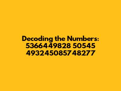 Hey guys! Ever stumbled upon a random string of numbers and felt like you've discovered some sort of ancient code? Well, today we're diving into a numerical sequence that looks like it could be just that: 5366449828 50545 493245085748277. At first glance, it might seem like a jumble of digits, but let’s break it down and see if we can make some sense of it. Whether it’s a serial number, a reference code, or just a random set of numbers, understanding what these digits could represent can be surprisingly useful. So, grab your detective hats, and let’s get started!