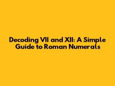 Hey guys! Ever been stumped by those mysterious Roman numerals? You're not alone! They might seem like ancient history (well, they are!), but they pop up in clock faces, book chapters, and even Super Bowl numbers. Today, we're going to crack the code of two common ones: VII and XII. Get ready for a super easy and fun dive into the world of Roman numerals! Understanding Roman numerals, like VII and XII, involves deciphering their symbolic representation. Each letter corresponds to a specific numerical value: I equals 1, V equals 5, X equals 10, L equals 50, C equals 100, D equals 500, and M equals 1000. When these letters are combined, their values are either added or subtracted based on their order. For instance, when a smaller value precedes a larger one, it indicates subtraction (e.g., IV equals 4, because it is 5 - 1). Conversely, when a smaller value follows a larger one, it indicates addition (e.g., VI equals 6, because it is 5 + 1). Mastery of these rules allows for the accurate interpretation of any Roman numeral, from simple ones like VII and XII to more complex combinations. Roman numerals are not just relics of the past; they continue to feature prominently in various modern contexts. They are commonly used in clock faces to denote the hours, in book chapters and appendices to organize content, and in the naming of annual events like the Super Bowl. Understanding how to read and interpret Roman numerals enhances one's ability to engage with these cultural and practical applications. Furthermore, the study of Roman numerals provides insight into the historical counting systems and mathematical notations used in ancient Rome, fostering a deeper appreciation for the evolution of numerical systems. So, whether you're trying to read the time on a classic clock or navigating through a formally outlined document, a solid understanding of Roman numerals is an invaluable skill.