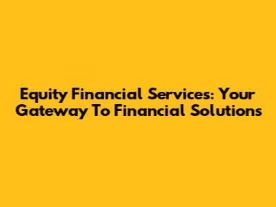 Equity Financial Services: Your Gateway To Financial Solutions