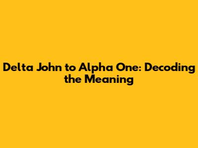 Have you ever heard callouts like "Delta John to Alpha One" and wondered what they mean? Well, you're not alone! This jargon might sound like something straight out of a military movie, but it's actually a standardized way of communicating, particularly in fields where clear and concise communication is crucial. So, let's break it down and uncover the mystery behind "Delta John to Alpha One."