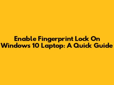 Enable Fingerprint Lock On Windows 10 Laptop: A Quick Guide