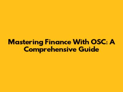 Mastering Finance With OSC: A Comprehensive Guide