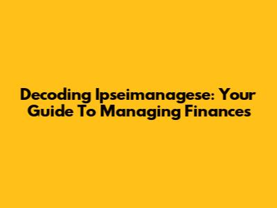 Decoding 'Ipseimanagese': Your Guide To Managing Finances