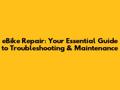 eBike Repair: Step-by-Step Solutions to Common Problems