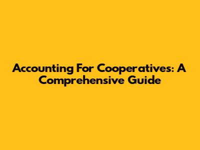 Accounting For Cooperatives: A Comprehensive Guide