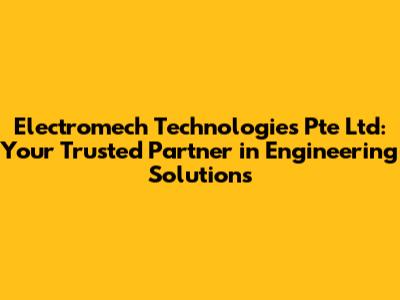 Hey there, tech enthusiasts! Are you on the lookout for a reliable partner in the world of engineering and electromechanical solutions? Look no further! Let's dive deep into Electromech Technologies Pte Ltd, a company making waves in the industry. We'll explore what they do, their expertise, and why they might just be the perfect fit for your needs. Buckle up, because we're about to embark on a journey through the exciting world of Electromech Technologies!
