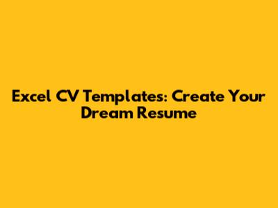 Excel CV Templates: Create Your Dream Resume
