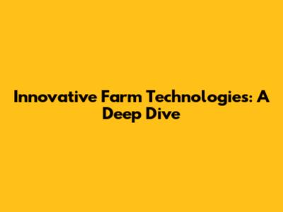 Innovative Farm Technologies: A Deep Dive