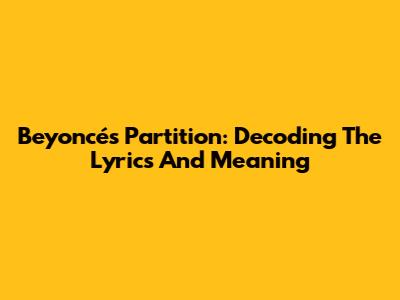 Beyoncé's Partition: Decoding The Lyrics And Meaning