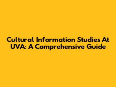 Cultural Information Studies At UVA: A Comprehensive Guide