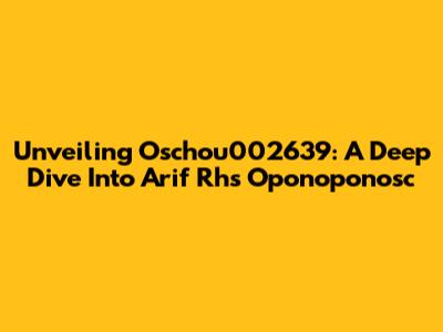 Unveiling Oschou002639: A Deep Dive Into Arif Rh's Oponoponosc