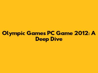 Olympic Games PC Game 2012: A Deep Dive