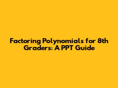 Hey everyone! Today, we're diving deep into the awesome world of factoring polynomials, specifically tailored for you awesome 8th graders. This isn't just about memorizing steps; it's about understanding the 'why' behind it all and how this cool math skill can make solving problems a breeze. Think of factoring like unboxing a present – you're taking something complex and breaking it down into its simpler parts. In math, polynomials can sometimes look like a jumbled mess, but when we factor them, we're essentially finding the 'building blocks' that were multiplied together to create that mess. This is super important because, in later grades, you'll use factoring to solve equations, simplify expressions, and so much more. So, grab your notebooks, get comfy, and let's unlock the secrets of factoring together! We'll be using a PowerPoint Presentation (PPT) style to guide us, making it visual and easy to follow. We'll cover the basics, different methods, and even some practice problems to get your brains buzzing. Ready to become factoring pros?