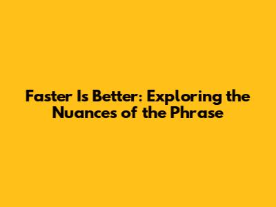 Hey guys! Ever heard the saying "faster is better"? It's one of those phrases that sounds simple but actually has a lot of different layers to it. In this article, we're going to dive deep into what it really means, how it's used, and whether it always holds true. So, let's get started and unravel this interesting idea together!