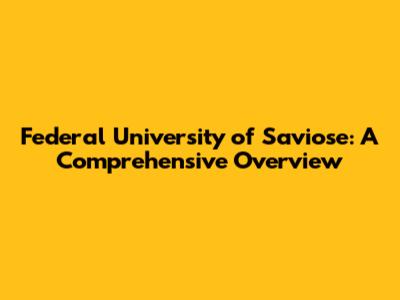 The Federal University of Saviose stands as a beacon of knowledge and opportunity, offering a comprehensive educational experience. With its rich history, diverse academic programs, vibrant campus life, and commitment to research and innovation, FUS provides students with the tools and resources they need to succeed in their chosen fields. Whether you're a prospective student, a current student, or an alumnus, the Federal University of Saviose is a place where you can learn, grow, and make a difference in the world.