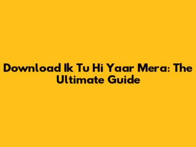 Download Ik Tu Hi Yaar Mera: The Ultimate Guide