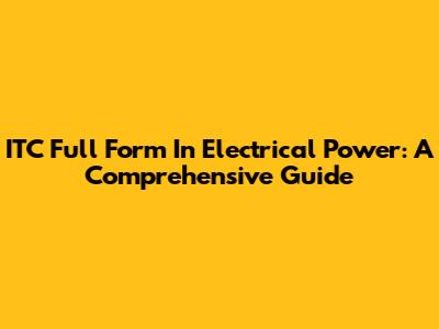 ITC Full Form In Electrical Power: A Comprehensive Guide