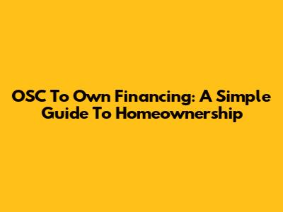 OSC To Own Financing: A Simple Guide To Homeownership