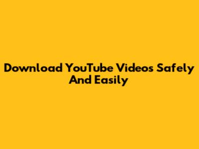 Download YouTube Videos Safely And Easily