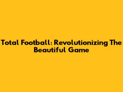 Total Football: Revolutionizing The Beautiful Game