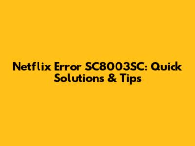 Advanced Solutions for Netflix Error SC8003SC