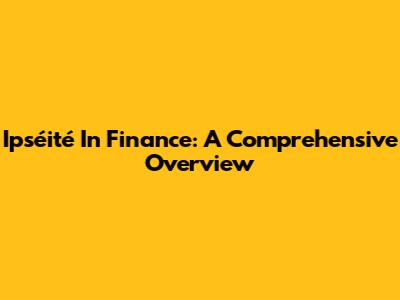 Ipséité In Finance: A Comprehensive Overview