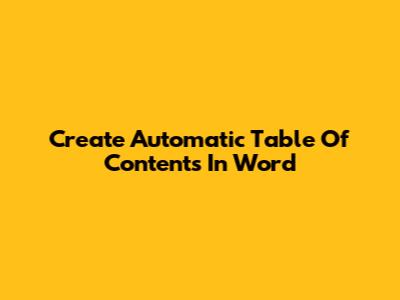 Create Automatic Table Of Contents In Word