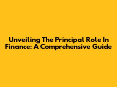 Unveiling The Principal Role In Finance: A Comprehensive Guide