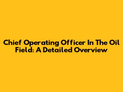 Chief Operating Officer In The Oil Field: A Detailed Overview