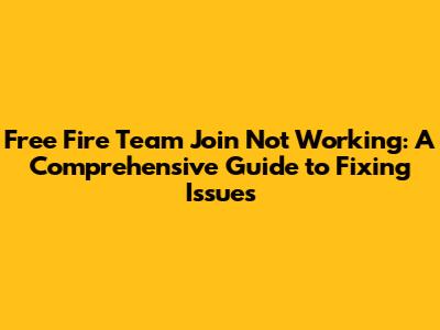 Understanding the 'Free Fire Team Join Not Working' Problem