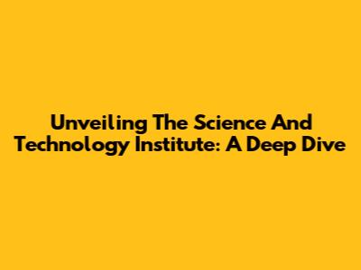 Unveiling The Science And Technology Institute: A Deep Dive