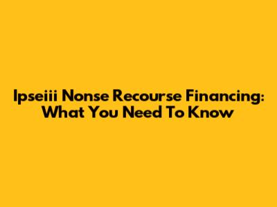 Ipseiii Nonse Recourse Financing: What You Need To Know