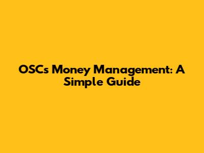 OSC's Money Management: A Simple Guide