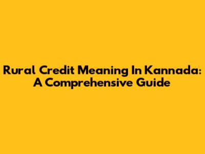 Rural Credit Meaning In Kannada: A Comprehensive Guide