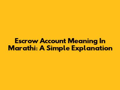 Escrow Account Meaning In Marathi: A Simple Explanation