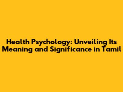 Health Psychology in Tamil: Key Concepts and Definitions