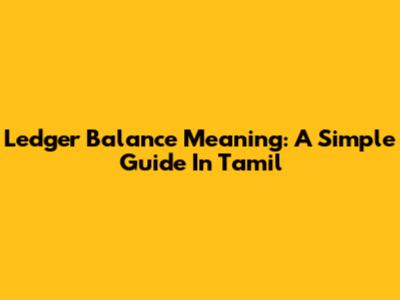 Ledger Balance Meaning: A Simple Guide In Tamil