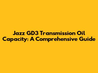 Jazz GD3 Transmission Oil Capacity: A Comprehensive Guide
